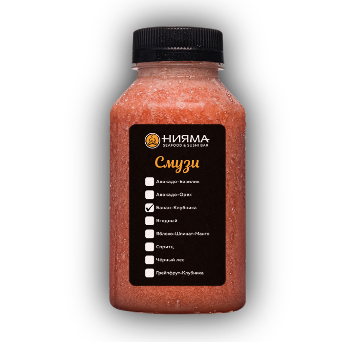 банан, сироп банан, сироп клубника, персиковый сок, клубника.
