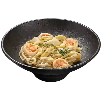 Спагетти с креветками и кальмаром в сливочно-устричном соусе.