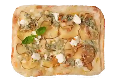 Хрустящая пицца с грушей, сливочным сыром рикотта, сыром дорблю, щедрой порцией меда и кедровых орешков в соленой карамели