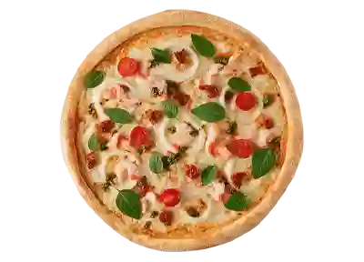 С креветками, кальмаром, моцареллой, томатами черри, вялеными томатами и сливочно-устричным соусом