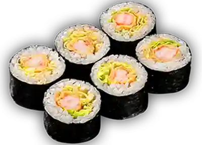 Лосось, снежный краб, авокадо, огурец, икра масаго и соус спайс